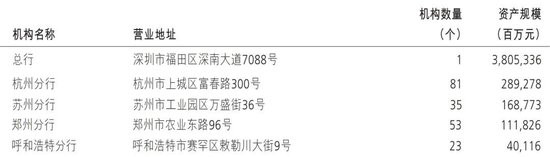 及1,800家支行,2家分行级专营机构(信用卡中心和资金营运中心),其中包括44家一级分行。