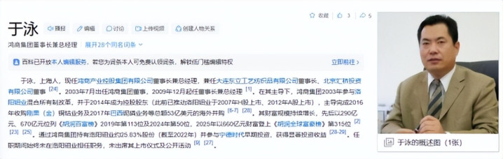 有意思的是,这家河南市值最高的企业,实控人并非河南籍。控股股东为鸿商产业控股,实控人是上海人于泳,直接持股26.07%,持股市值约1396亿元。2025年他以660亿元登上《胡润全球富豪榜》第315位,堪称洛阳钼业转型的“关键推手”。