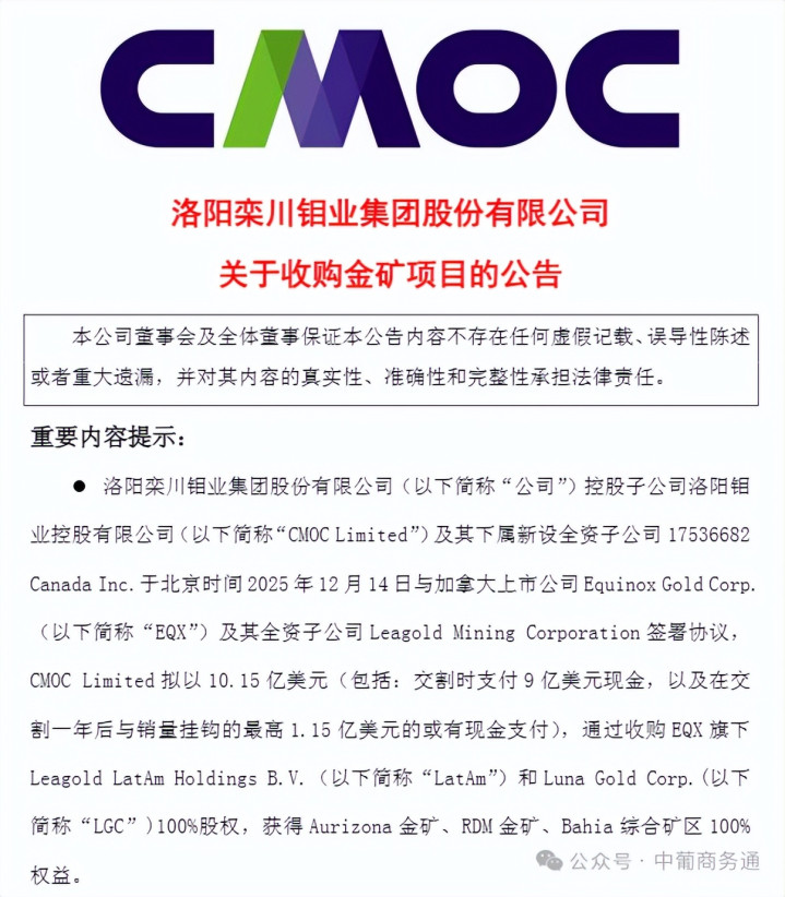 业绩预告发布仅10天,洛阳钼业再抛重磅:2026年1月25日公告完成巴西四座金矿收购,以最高10.15亿美元对价拿下501.3万盎司(约156吨)资源量、387.3万盎司(约120吨)储量的优质资产,从披露到交割仅40天,创下国际矿业并购的“中国速度”。市场却捏了一把汗:海外矿业并购向来“收购易、运营难”,巴西监管趋严且老牌矿山有社区、环保潜在问题,产能能否如期兑现?整合成本会不会超支?