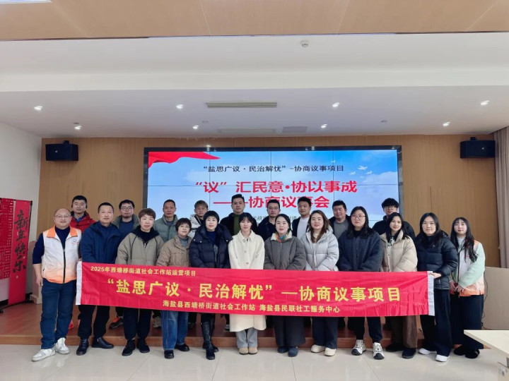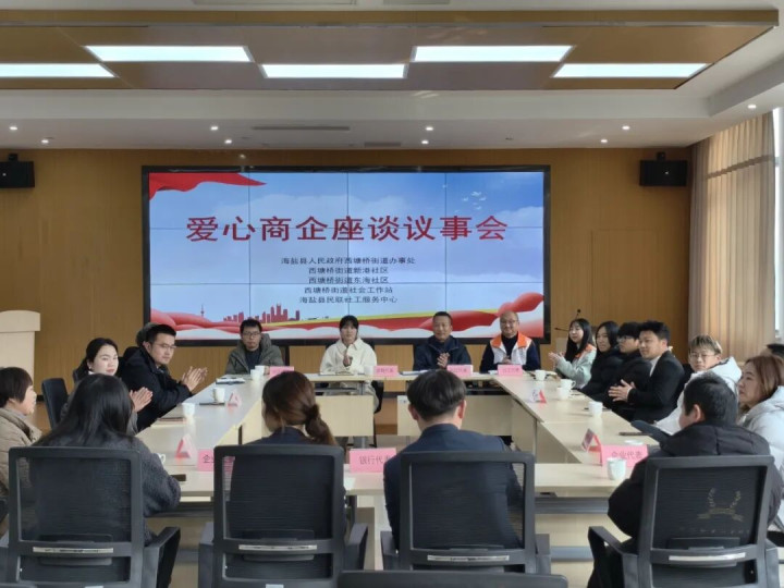 为深化党建引领基层治理,凝聚辖区商企爱心力量,搭建公益联动与资源互通桥梁,构建“商企联盟”共建共治共享新格局。2026年1月28日下午,在海盐县人民政府西塘桥街道办事处的支持与指导下,西塘桥街道社会工作站、海盐民联社工携手街道党群服务中心、新港社区、东海社区召开“爱心商企座谈议事会”。医疗、金融、餐饮、物业等多领域商企代表齐聚一堂,共话协作发展,参与20余人。
