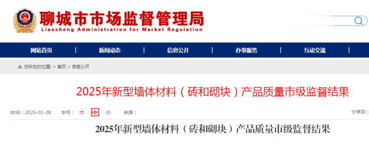 {jz:field.toptypename/}中国质量新闻网讯据山东省聊城市市场监督管理局网站消息,近日,聊城市市场监督管理局公布2025年新型墙体材料(砖和砌块)产品质量市级监督结果。本次共抽查生产领域新型墙体材料(砖和砌块)产品12批次。