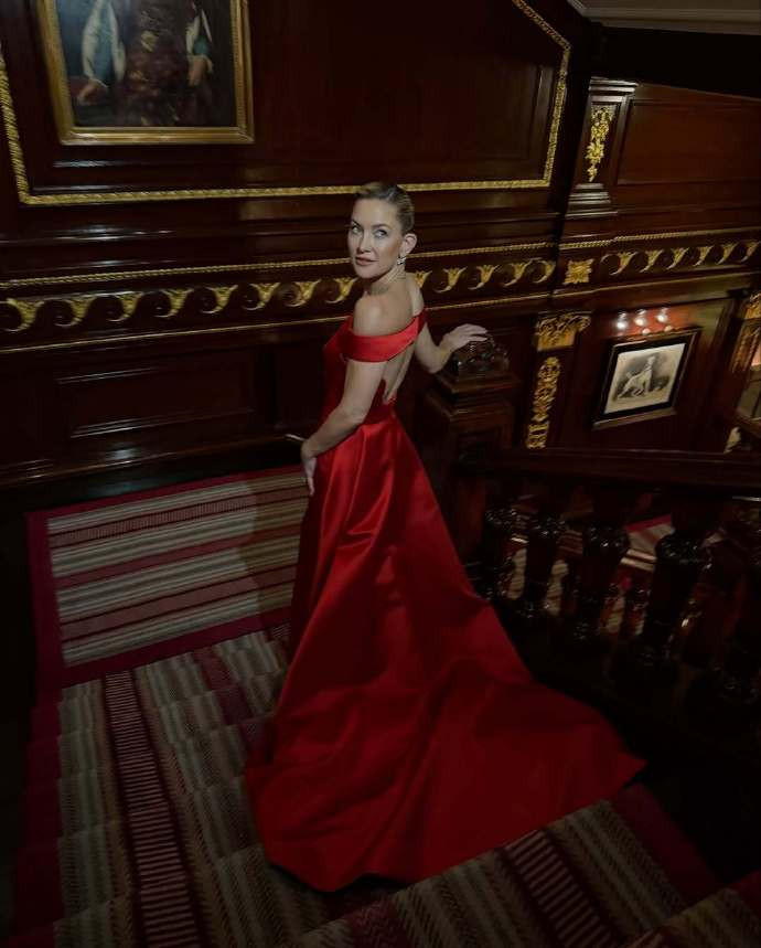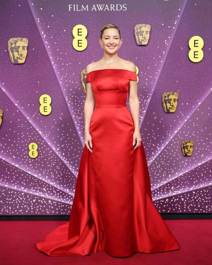 Kate Hudson亮相英国电影学院奖红毯,身穿Prada 相配定制红裙,
