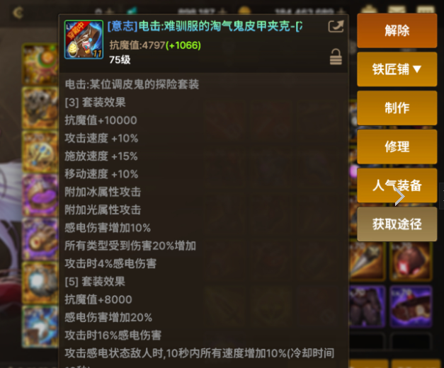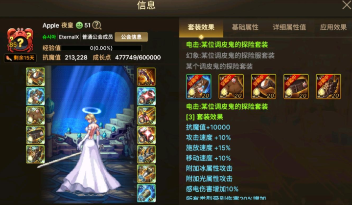 在隔壁服玩家的平均属性都能轻松图片300,而这套“至尊感电套”也是在隔壁服火了,即使是抗魔值达到了21万的大佬都已经是换上了这套装备。不得不说隔壁服的抗魔值膨胀也是很厉害的,估计80级版本上线后,大家的最高抗魔值也是能突破20万吧,这伤害简直不敢想象。