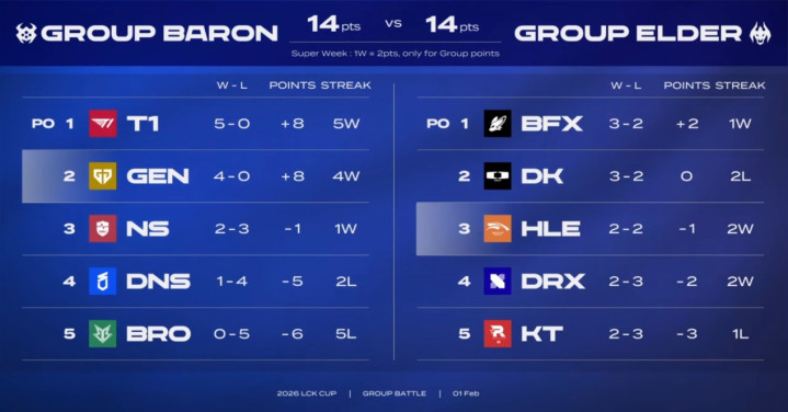 可能很多观众现在还不知道HLE到底是怎么淘汰的,这里简单和大家说一下,因为LCK第一赛段是分组赛,大龙组和远古龙组各有五支队伍,打组外循环,然后积分高的小组获胜,五支队伍可以全员晋级,而落败小组的倒数第一名会被淘汰。