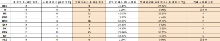 LCK杯整体使用率