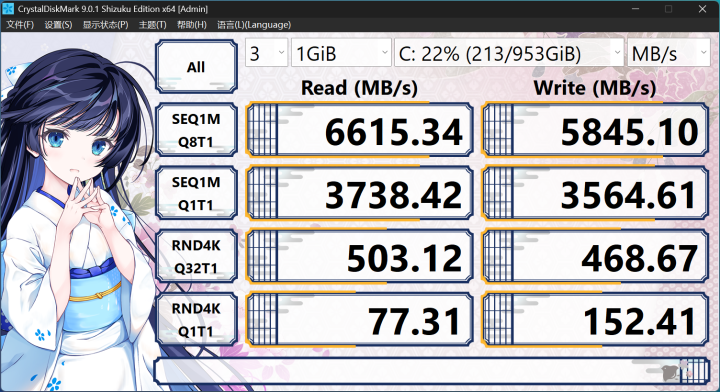 存储方面,我们手上这台机器搭载的是1TB的PCIe 4.0 SSD。实测读取速度超过 6600MB/s,写入速度超过5800MB/s。