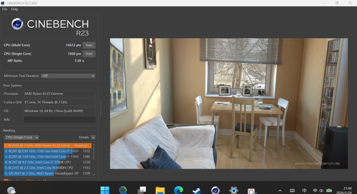 在CineBench测试标准下,该机R23多核跑分能跑到14612分,单核1950分。这个成绩放在掌机圈子里,基本上就是目前的第一梯队,甚至已经摸到了前两年一些轻薄全能本的尾巴。