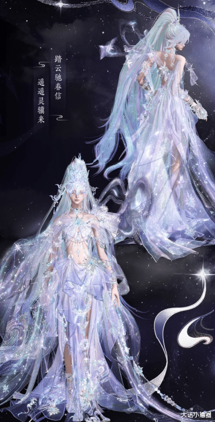 而女款的高腰束身搭配广袖流云,上半身星芒饰品点缀,衣袖间的暗纹在染色后超明显,下半身渐变裙裾层叠铺展,走路时如踏雪翻云,尽显凌云身姿。像是随手拍都能出大片,简直是“美到三界失色”。