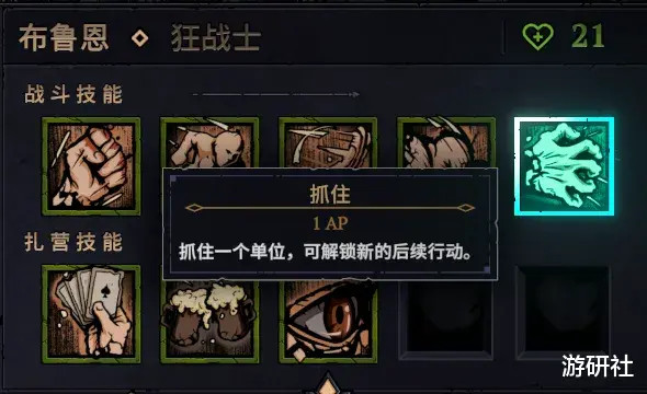 以狂战士为例,除了“近战、血条厚、坦克”这些我甚至都不用额外解释的特点外,他的初始技能里还有个额外的“抓取机制”:
