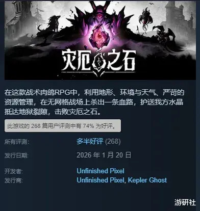 但要说“优秀肉鸽”,《灾厄之石》仍然有很长一段路要走,如今游戏好评率仅为74%,是“多半好评”。