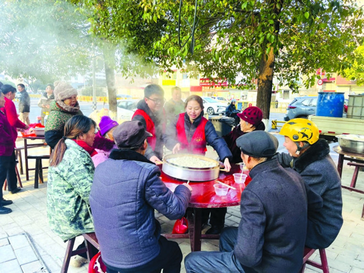 1月29日,红旗街道东升社区新时代文明实践站和小鹿快订生鲜到家联合在棕蓝海小区举办“烟火暖邻里、肉丸裹温情”蒸饭包肉丸主题活动。活动以传统美食为纽带,在热气腾腾中传递社区温暖,进一步丰富居民文化生活,融洽邻里关系。图为志愿者将新鲜出炉的饭包肉丸端上餐桌给居民享用。