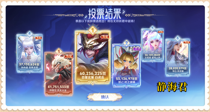 另外,还有百里玄策的白虎志、妲己的时之彼端、孙悟空的齐天大圣、孙尚香的异界灵契、王昭君的星穹之声、李白的凤求凰这6款限定皮肤确定会在春节期间,通过无双祈愿的奖池进行返场,有兴趣的小伙伴现在就可以准备点券了(先打个预防针,星空体育抽奖返场的话,代价确实不菲)。