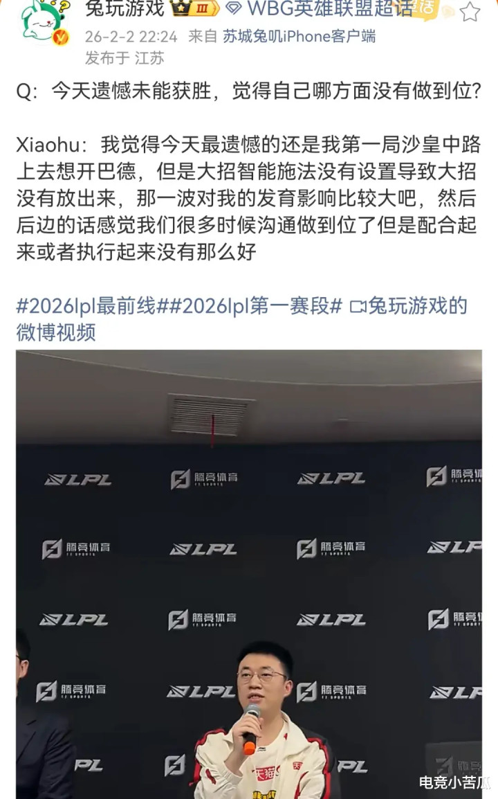 赛后采访的时候,小虎还解释了这一波失误,按照小虎的说法,就是大招忘记智能施法设置了,就出现了这波失误,真的很可惜,本来自己可以带节奏的,当时机会很好,但是失误之后,自己都发育也受影响了。