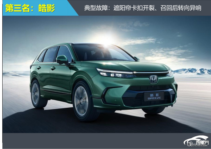 典型故障:遮阳帘卡扣开裂、召回后转向异响