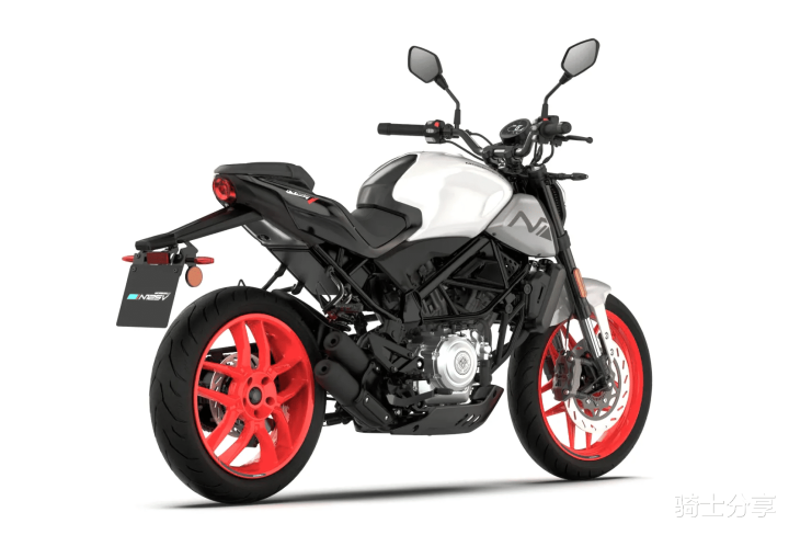 从整体风格来看,这是一款运动街车,它的设计手法比较偏欧系,非圆形复古大灯、单侧双排气、上翘后尾、裸露车架、橙色轮毂、后单摇臂等细节设计,使得整车很有辨识度,根本就不像是一款125cc的入门级摩托车。