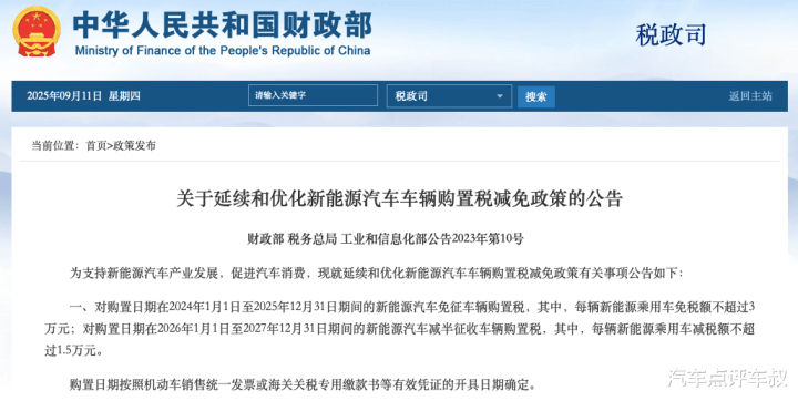 不难发现,几乎大部分品牌都在环比下滑,这不是某个品牌的问题,而是整个行业面临的共性挑战。核心原因只有一个:2025年底,新能源汽车购置税全额免征政策正式结束,改为减半征收。这看似只是政策力度的调整,但实际影响远超预期。