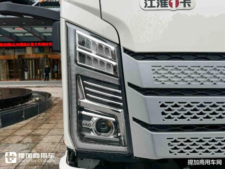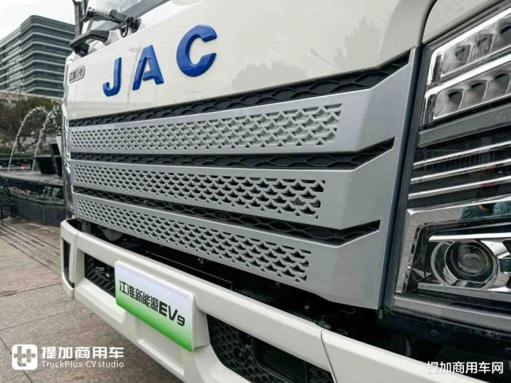 同时,江淮新能源EV9轻卡采用梯形LED大灯设计。这一元素不仅提供了良好的照明效果、极佳的昼夜辨识度,更以一种锐利的几何切割感,打破了传统轻卡前脸平淡无奇的设计惯性。