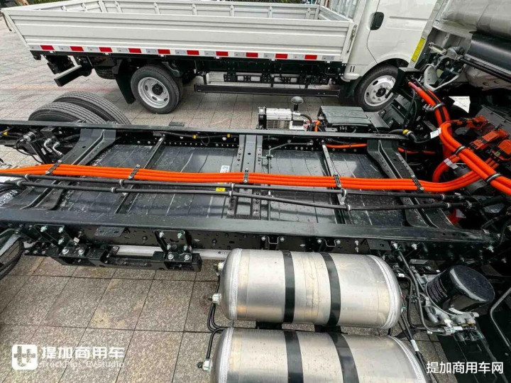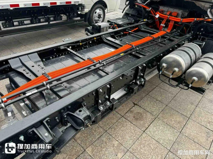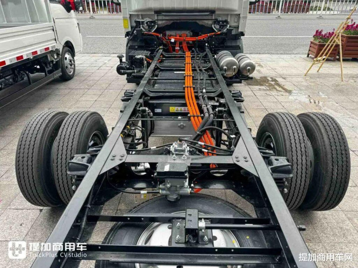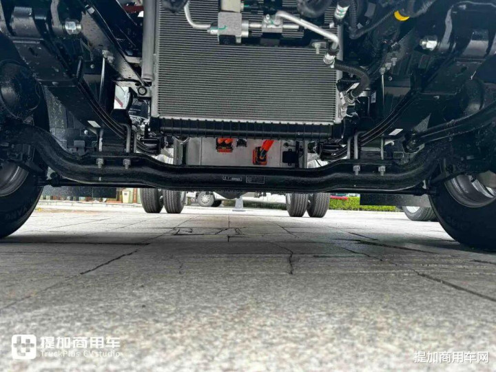在承载能力这一轻卡的核心竞争力上,江淮新能源EV9轻卡展现了深厚的功底。车辆采用采用850mm大开档车架设计,配合180mm直通梁、宝钢QSTE650高强度材料,形成了行业少有的大断面、等截面承载结构,较传统的180+140mm燕尾梁设计在抗扭刚性上实现质的飞跃,车架强度提升63%,带来更强的承载能力,也提升了行驶稳定性