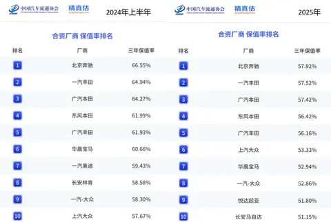 此外,对比2024年上半年,2025年二手车的三年保值率也大幅下滑。这意味着,中国用户的荷包也会因为拥有汽车而会瘪了些。