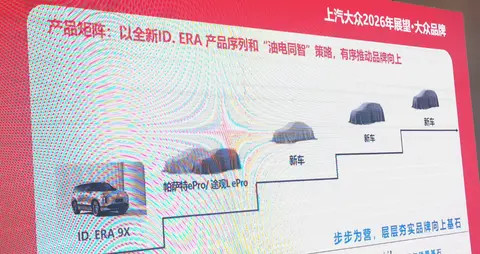 还比如,已经亮相并将在2026年上市的ID. ERA 9X,已经是一台拥有主流新能源车特征的大众增程车。跟随其后的,上汽大众还有几款计划推出的新能源车型,涵盖增程、插电混动及纯电等多种动力形式。
