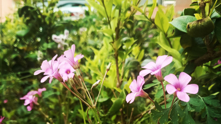 三叶草花:粉嫩花朵与翠绿三叶草的完整纠合,