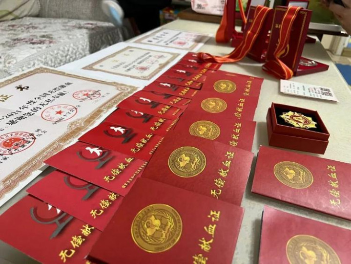 从最初获得无偿献血铜奖、银奖,亚搏再到荣获全国无偿献血奉献奖金奖,每一枚奖章背后,都是他一次次毫不犹豫的挽袖。