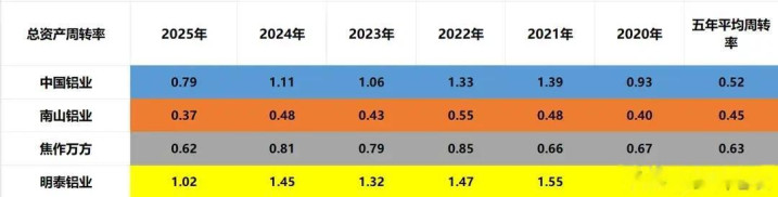 明泰铝业净资产收益率为7.52%,在四家公司中体量最小,但资产周转速度位列第一。公司已深入布局特高压、低空经济、机器人等新兴产业,产品前景广阔。