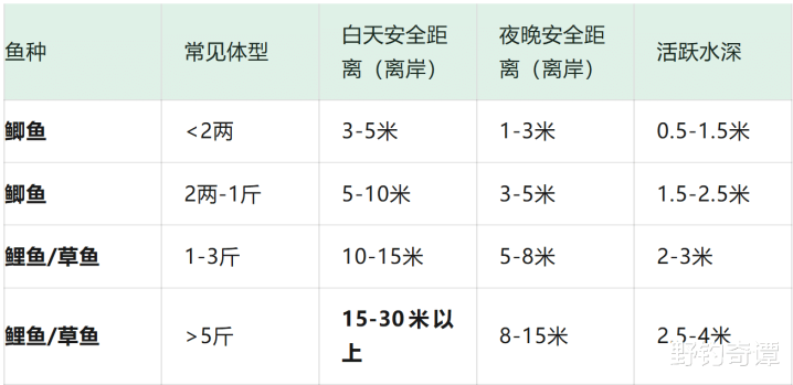 大型鱼(如1斤以上的鲫鱼、5斤以上的鲤鱼、草鱼):这些可齐是“老江湖”了。它们的“安全距离”远超我们遐想。在白日,它们很少会干预离岸15米以内的区域,以至更远。
