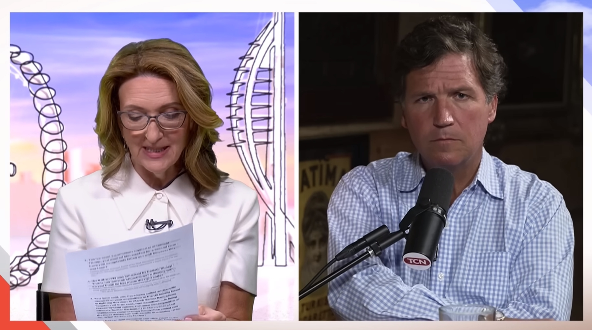 当地时间4月12日,前好意思国福克斯新闻主播塔克·卡尔森作客英国播送公司(BBC)一档王牌节目,在这场炸药味饱和的访谈中,他袭击好意思国前总统特朗普、英国首相斯塔默均所以色列利益的“随从”,二东谈主根蒂莫得独处有策划的开脱。
