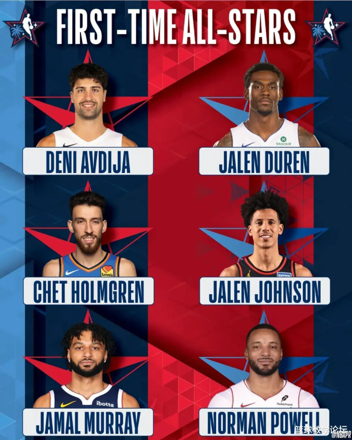 今年NBA全明星正赛,有6名球员是生涯首次入选:诺曼-鲍威尔、贾马尔-穆雷、杰伦-约翰逊、杰伦-杜伦、阿夫迪亚、切特-霍姆格伦。这其中生涯最长的就是鲍威尔,他在联盟打了11个赛季才入选全明星,排名NBA历史第三晚。