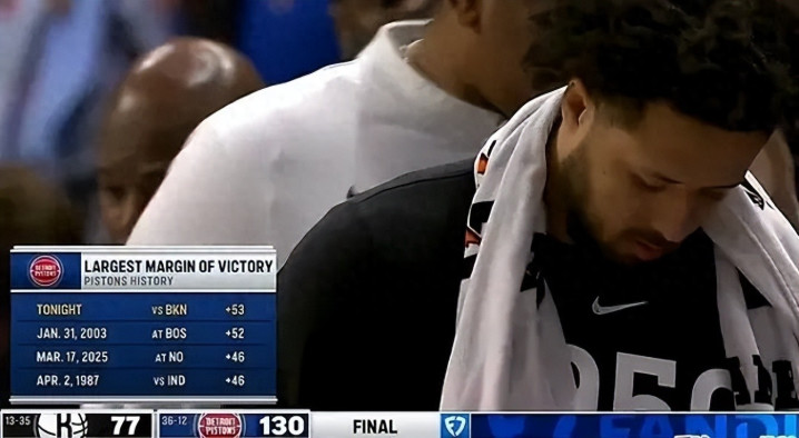 动不动就疯狂惨败,近日篮网77-130不敌东部老大活塞。