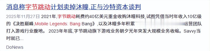 财联社:腾讯松开做事室、字节卖掉沐瞳,游戏大厂国外“武备竞赛”暂缓