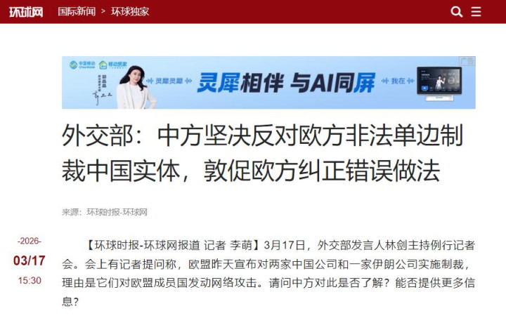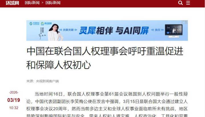 2026年3月16日,日内瓦万国宫举行国外会议,欧盟代表一板一眼念发言稿,样子十分贬抑,大洋此岸的应酬媒体很快就刷屏了。
