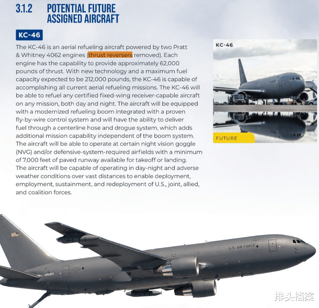 那么,身为美国空军最新一代战略加油机的KC-46A为啥不装反推装置呢?这倒不是因为反推装置是什么“黑科技”,而是因美国人认为,战略加油机这种大型辅助类军机多部署于跑道质量条件较高的二三线机场,鲜少会像容易遭到打击的一线机场那般,面临只能在长度有限的跑道残片上起降的情况。既然大多数情况下的跑道都足够长,可供KC-46A实现正常降落和减速,那即便不装反推装置也“够用”。但这一次,出事的KC-46A是在滑跑起飞的过程中“紧急猛踩刹车”,剩余跑道长度恐早已无法进行从容减速,进而导致了事故的发生。