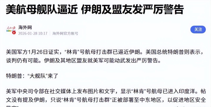美国人这回似乎动了真格。特朗普重掌白宫后,行事风格我们都熟悉,那就是极限施压。美军中央司令部也不藏着掖着,直接把“亚伯拉罕·林肯”号航母顶到了最前线。这不是来旅游的,这是一座移动的海上堡垒,上面满载着随时能起飞的战机。