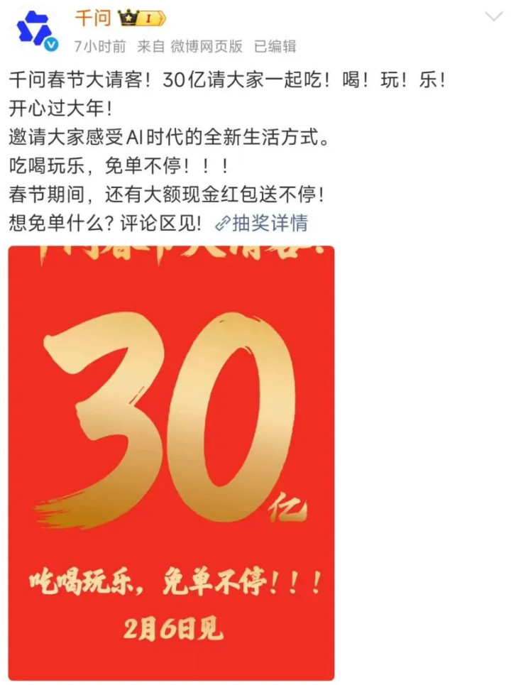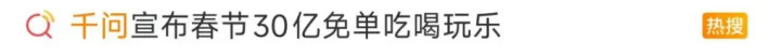 今天早上,千问接着大手一挥,拿出了30个亿出来玩儿。