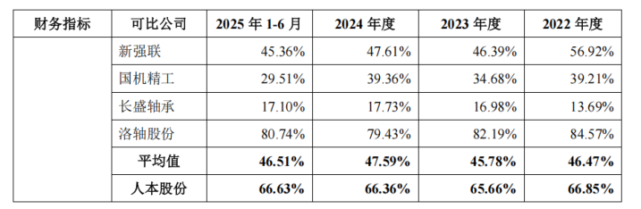限度2025年6月末,东说念主本股份合并口径钞票欠债率达66.63%,银行借债余额占欠债总和的比例为62.39%。同时,同业业可比公司的钞票欠债率平均值仅为46.51%。东说念主本股份示意,轴承行业属资金密集型,而公司此前融资渠说念单一,主要依靠银行借债,导致欠债率偏高。此外,公司流动比率和速动比率区别为1.08和0.76,低于机械制造行业平均水平,短期偿债压力涌现。